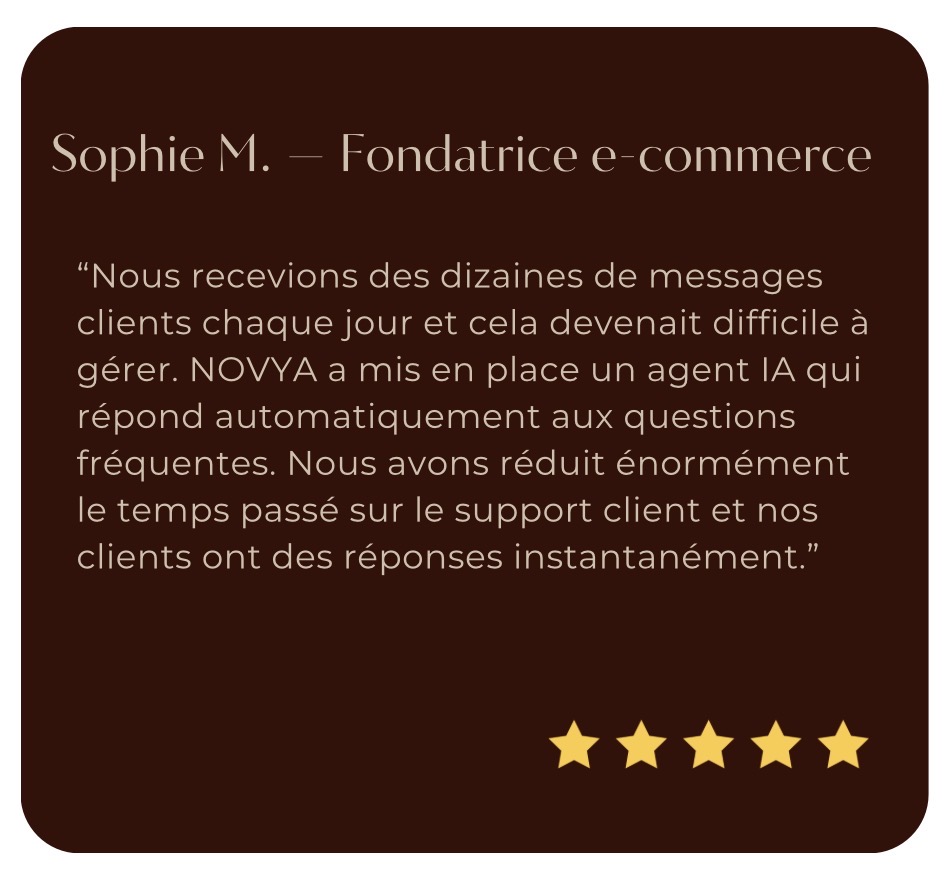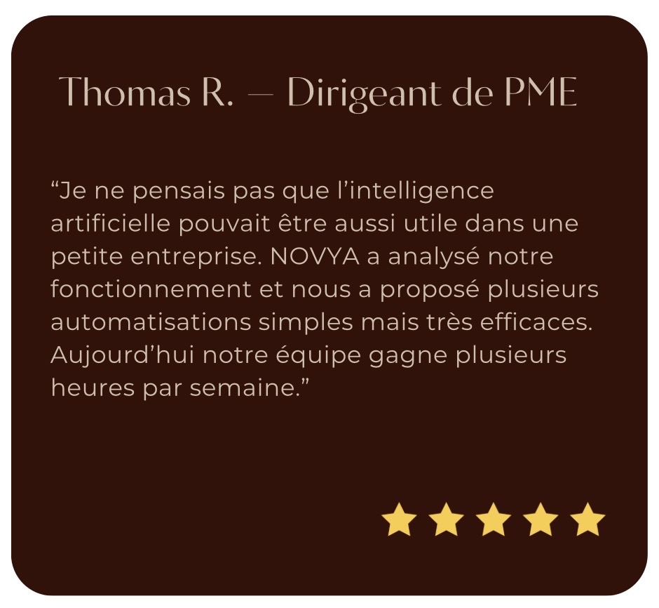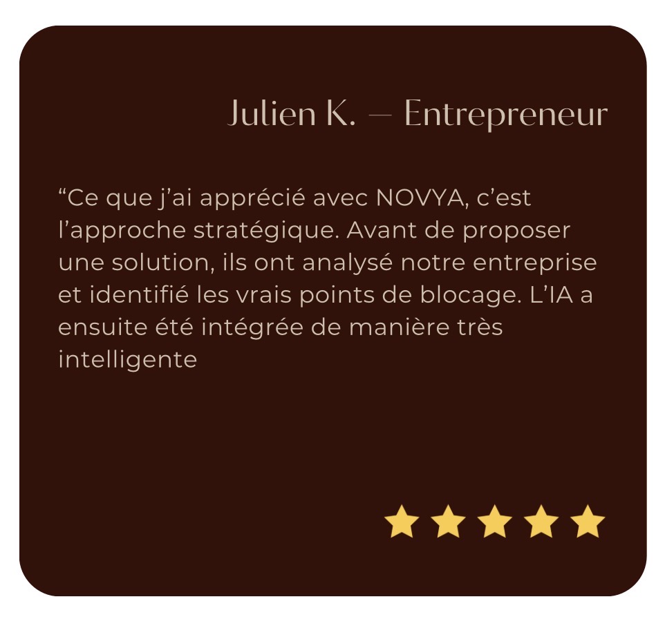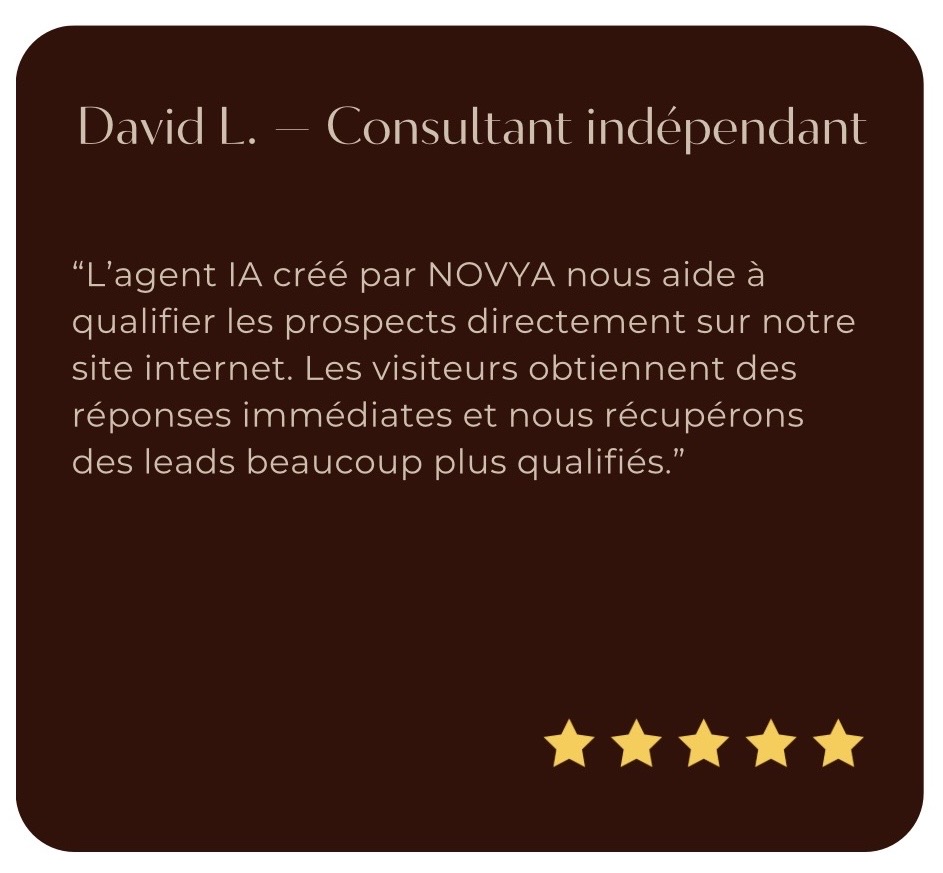 Notre engagement s’inscrit dans la durée pour garantir la performance pérenne de vos outils. NOVYA assure un suivi rigoureux pour ajuster vos agents IA, améliorer leurs résultats et intégrer régulièrement de nouvelles capacités d’automatisation, permettant à votre entreprise d’évoluer sereinement avec la technologie.